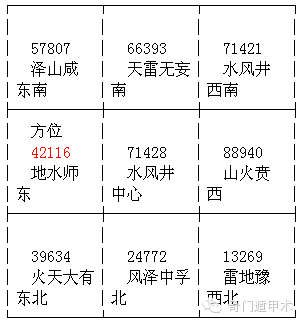 我们从以上奇门遁甲盘中取数码:42116/3,我们使用的奇门遁甲体系,更直接准确。